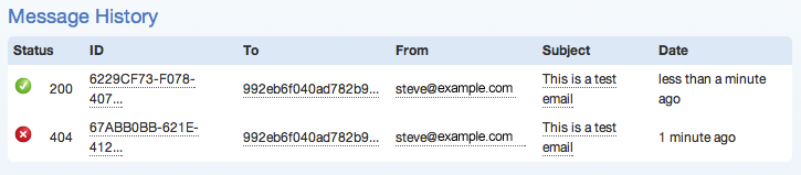 What? The delivery failed? When we take a look at the delivery status page we can not only see that the message has failed but see that the target gave a status code of 404 because we never set up a page to receive the email. CloudMailin is clever enough to know the difference between the status codes that it receives when it delivers the email. If it receives a status code like 200 it assumes that everything was ok and the message was received successfully. If the target server has an error then or is unavailable then CloudMailin will tell the server that an error has occurred and that it should retry later. Finally if a status code like 404 or 422 occurs then it will tell the server that the message was rejected and that it should not try again later. More details about the HTTP responses that you can give to CloudMailin and the actions taken can be found in the HTTP status codes documentation. You can even send a custom bounce message when you reject the delivery of an email so long as your response is in plain text. Ok so now its time to write some code and receive our email. If you are using Rails, you can take a look at some previous blog posts. There are also some examples in the parsing the email documentation. CloudMailin is language agnostic though, you can use it to receive incoming email in Java, PHP, Python, .Net, Scala, Small Talk or any other language that you want (so long as it can parse HTTP Posts). We are hoping to expand the languages in the documentation and they are all on github so feel free to contribute documentation for your favorite language! The request is sent to your server in the same way as any other form that you would fill in on your site as a multipart/form-data request. The plaintext and html parts are also nicely separated out to make life easier but the full email is available to allow more detail and attachments if it's needed. The HTTP Post format documentation should help here. Great, so now we have our server configured correctly, we're ready to receive our email. So lets go ahead and send another email to our CloudMailin email address.